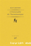Jean Grondin, Auteur | Paris : Librairie Philosophique J. Vrin | Bibliothèque d'histoire de la philosophie, ISSN 0249-7980 | 1993Herméneutique, l'horizon de la pensée contemporaine l'est à un double titre. Partant de l'universalité de l'ordre interprétatif, l'herméneutique confronte d'abord la pensée au défi de la pluralité des savoirs et de sa propre historicité, constel[...]![]()